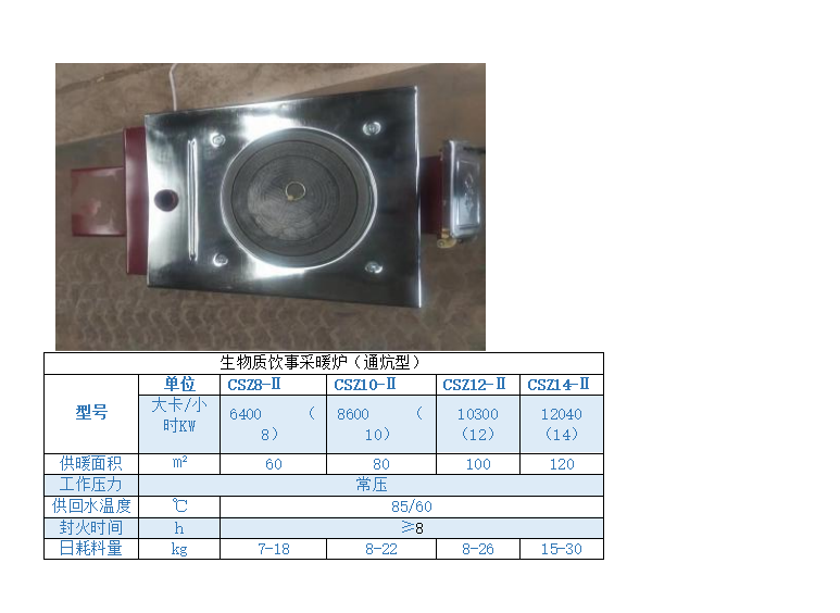 7、使用成本比燃气壁挂炉便宜一半,供热量达到12KW以上,而且做饭火力强;供暖,烧水,做饭均不误,热效率超过90%,一炉多用,经济实惠,
